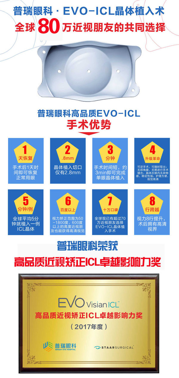 由于ICL人工晶体植入手术对医生技术要求极高,在重庆,能开展这一手术方式的医院并不多。作为国内较早开展高度近视人工晶体植入手术的全国连锁眼科医院,普瑞眼科于2014年年底率先在市内引进ICL(V4C)晶体植入术。